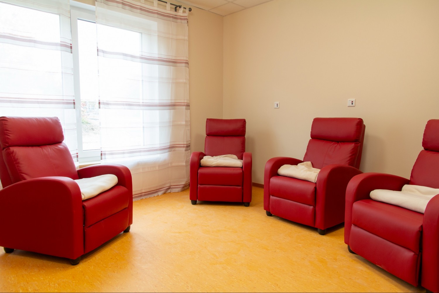 - hat großzügige und rollstuhlgerechte Räume für Gemeinschaftsrunden und zum Ruhen